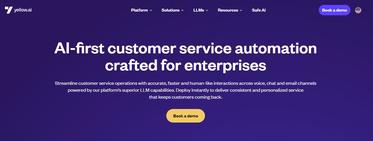 1.Omnichannel Support: Yellow.ai’s platform allows businesses to deploy chatbots across multiple channels including websites, mobile apps, WhatsApp, Facebook Messenger, and more, ensuring a consistent customer experience.