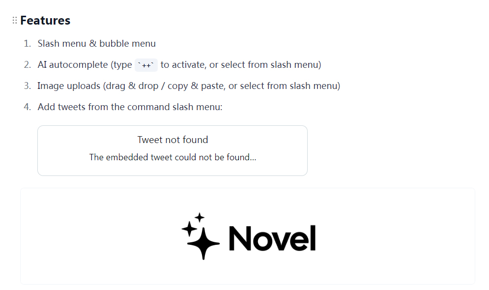 Tags:AI Book Writer ToolsNovel is a Notion-style WYSIWYG editor with AI-powered autocompletion. Built with Tiptap + Vercel AI SDK.